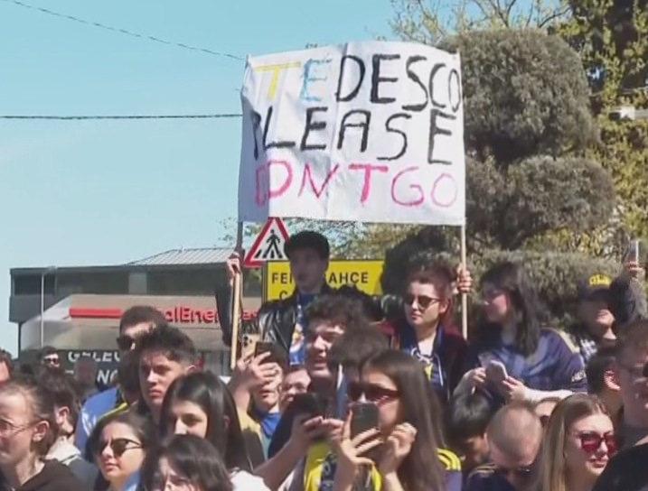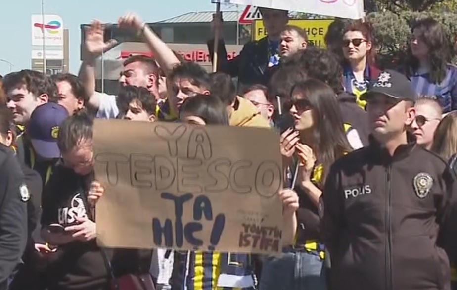 Bazı taraftarların İtalyan çalıştırıcı için İngilizce olarak hazırlanmış 'Tedesco lütfen gitme' ve 'Ya Tedesco ya hiç' şeklinde yazılı pankartlar hazırladığı da görüldü.