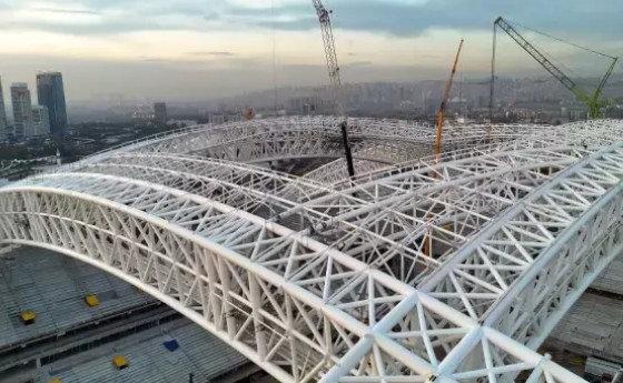Ankara'nın simgesi olacak 19 Mayıs Stadyumu'nun inşaatı hızla ilerliyor. Drone ile kaydedilen son görüntülerde, stadyumun çelik çatısının montaj aşamasına geldiği ve yapısal iskeletin büyük ölçüde tamamlandığı görüldü.