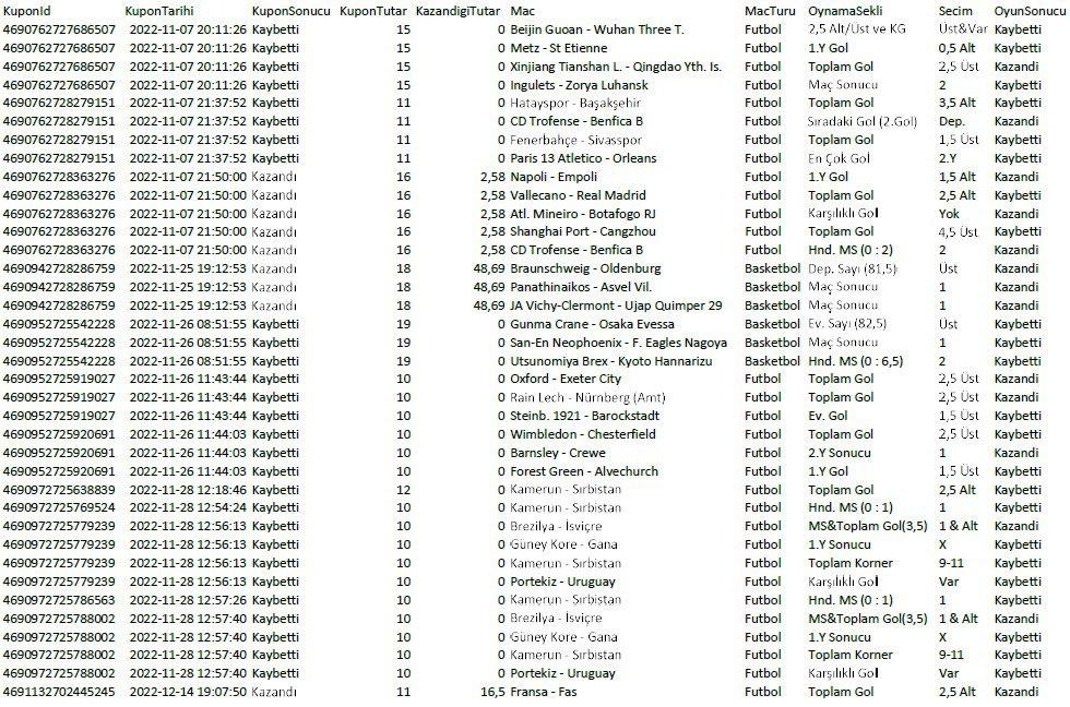 Ekte: 1-TFF'den gelen dosyada oynadığım iddia edilen abuk subuk maçlar, tarihleri, yatırıldığı iddia edilen tutarlar