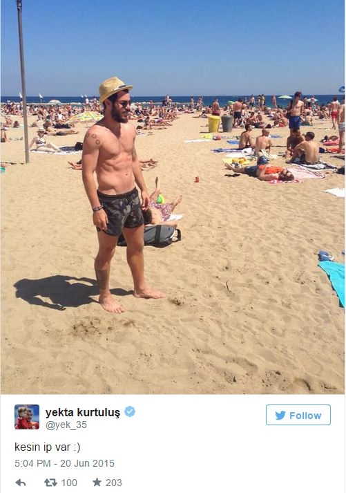 Bu yorumlara karşılık tatil fotoğrafını Twitter'a koyan Yekta, "Kesin ip var :)" mesajıyla yanıt verdi.