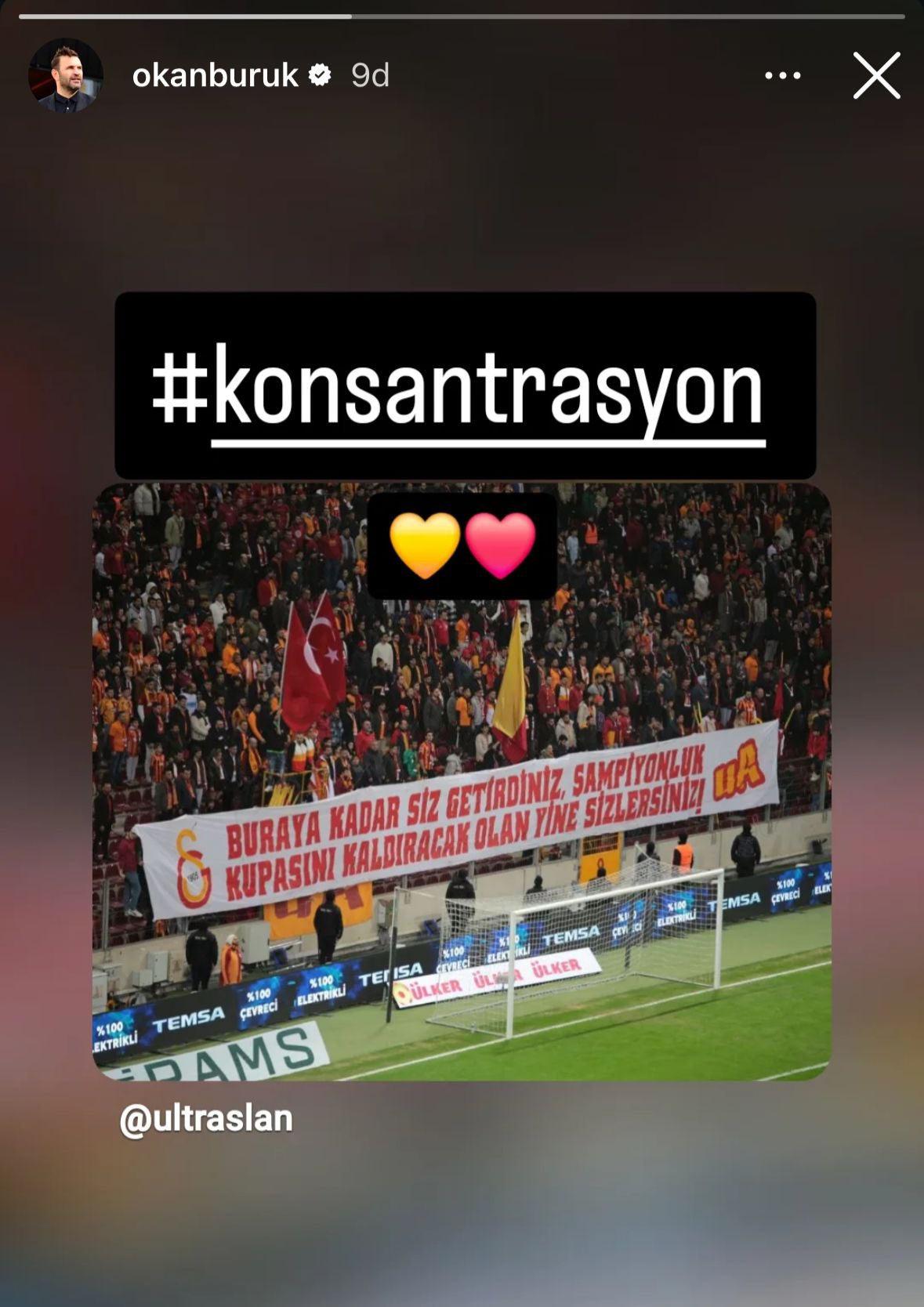 Okan Buruk, Ultraslan taraftar grubunun “Buraya kadar siz getirdiniz, şampiyonluk kupasını kaldıracak olan yine sizlersiniz” yazılı fotoğrafını Instagram hikayesinde paylaştı. Buruk taraftarlara çağrı yaparak, “Konsantrasyon” mesajını yazdı.