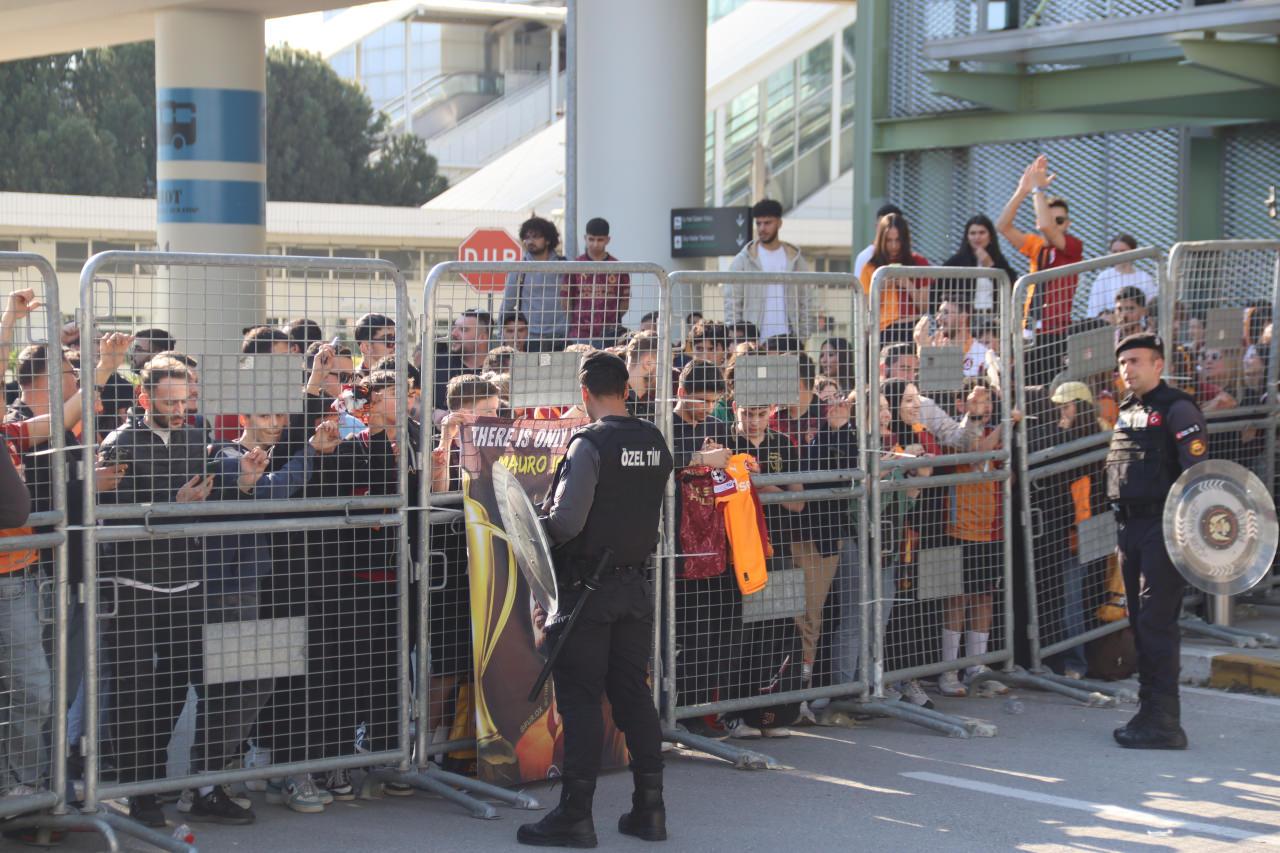 Galatasaray, Trendyol Süper Lig’in 27. hafta erteleme maçında yarın Göztepe ile oynayacağı karşılaşma için İzmir’e geldi. Sarı-kırmızılılara havalimanında taraftarlar yoğun ilgi gösterdi.