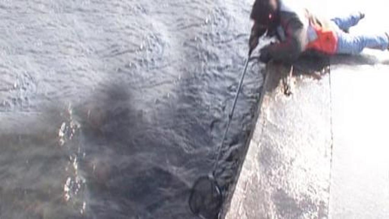 İstanbul'da etkili olan kar yağışı ve soğuk havayla birlikte balıklar su yüzeyine çıktı. Sahile koşan vatandaşlar kepçe ile balık tuttu.