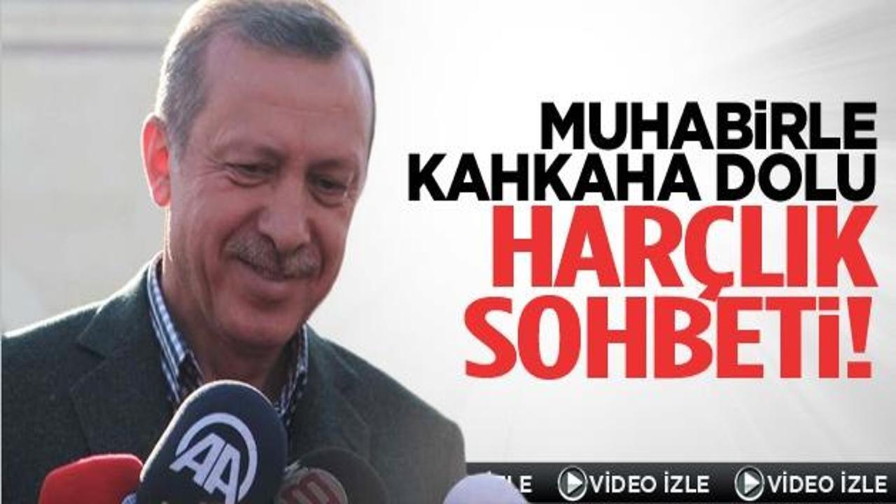TGRT Haber muhabirinin ""Annemizle babamızla bayramlaşamadan sizin yanınıza geldik, harçlığımıza da istiyoruz." şeklindeki esprili konuşması üzerine Erdoğan, muhabire 200 lira bayram harçlığı verdi. Daha sonra da Erdoğan, "Aranızda paylaşın" demesi üzerine kahkahalar havada uçuştu. Erdoğan muhabir ile bayramlaştıktan sonra camiden ayrıldı.
