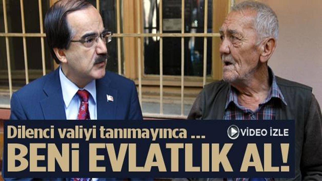 Adana'da bir ayağı sakat olan 75 yaşındaki dilenci, yardım istediği kişinin Vali olduğunu öğrenince önce şaşırdı, sonra da “Artık dayanamıyorum, beni evlatlık al” dedi. Yaşlı adam, elinde bir tek evinin kaldığını, onu da oğlunun almak istediğini söyledi.