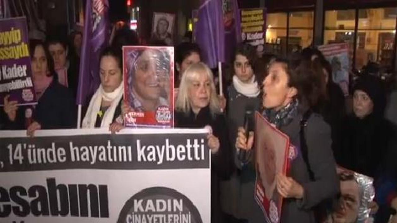 Ellerinde 'Kaderin Hesabını Soracağız' şeklinde pankart bulunduran kadınlar, zaman zaman "Kadın Cinayetlerini Durduracağız" şeklinde slogan attı.