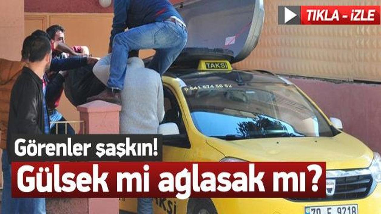 Taksinin üzerine bir bagaj yerleştirildi. Yaşlı kadının cenazesi tabutla morgdan çıkartıldı. Bir kişi cenazeyi bagaja yerleştirmek için taksinin üzerine çıktı. Tabut, taksinin kenarına konulduktan sonra kapağı açılıp ceset torbasındaki yaşlı kadının cenazesi 4 kişi tarafından alınıp taksinin üzerindeki kişiye uzatıldı. Bu kişi de diğerlerinin yardımıyla cenazeyi bagaja koyup kapattı. Cenaze aracı gibi kullanılan taksi Adana’dan 315 kilometre uzaklıktaki Ermenek’e gitmek için yola çıktı.