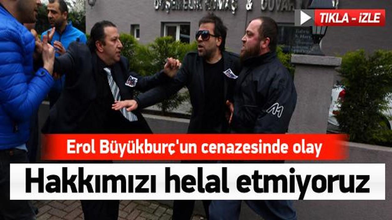 Geçtiğimiz günlerde evinde ölü bulunan Ünlü sanatçı Erol Büyükburç'un İstanbul Levent Camii'ndeki cenaze töreninde olay çıktı.