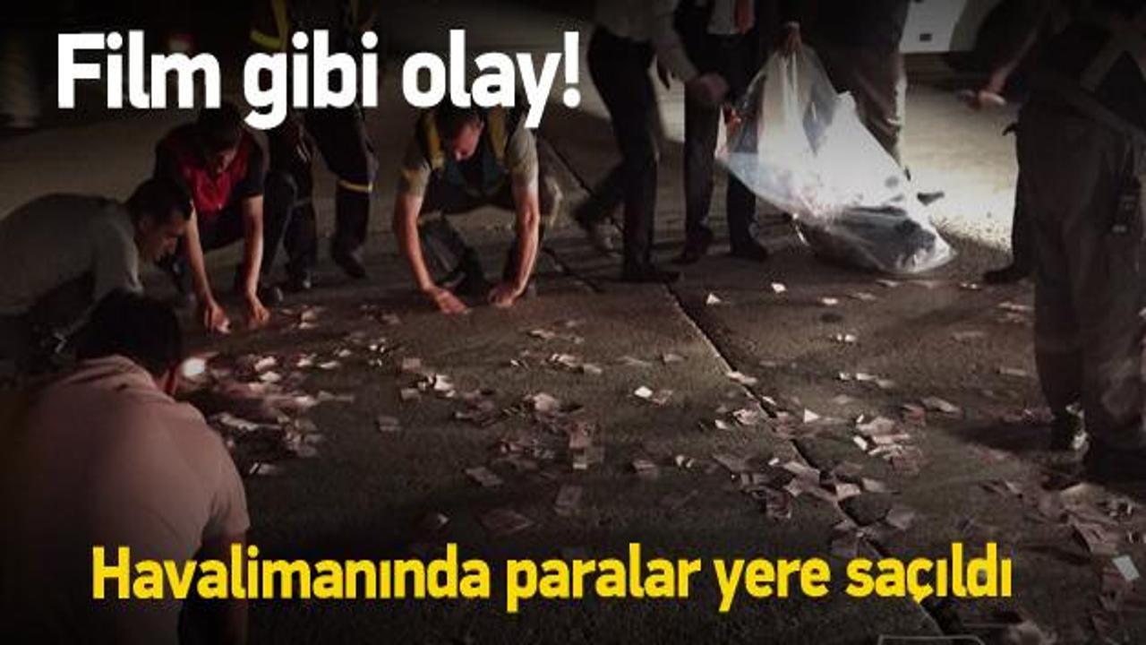 Para torbasının patlamasıyla birlikte içindeki binlerce TL apronun zeminine, uçak park yerlerini arasına saçıldı. Rüzgarın etkisiyle balya halinde bağlı olan kağıt paralar geniş bir alana yayıldı.