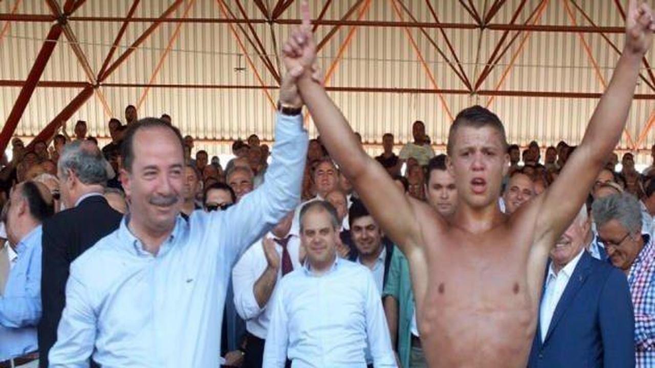 654. Tarihi Kırkpınar Yağlı Güreşleri deste orta boy birincisi Edirneli Belediyesi pehlivanı Ufuk Yanık, Edirne Belediye Başkanı Recep Gürkan'ı ziyaret etti.
