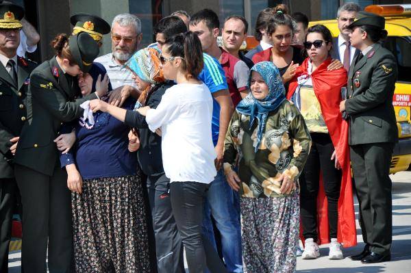Şehidin annesi Aysel Aktürk tabuta sarılarak, "Seni kalleşçe vurdular. Karşına çıkamadılar, karşısına çıksalardı oğlum onları vururdu" diye gözyaşı döktü. Şehidin 80 yaşlarında bir kadın yakını da tabuta sarılarak, "Böyle mi karşılayacaktık seni? Allah Ankara'dakilerin de doğudakilerin de kökünü kurutsun" dedi.