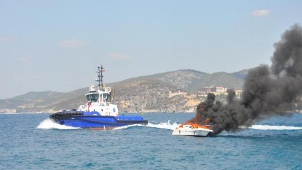 "Beren" isimli sürat teknesinin, Güvercinada açıklarında seyir halindeyken motor kısmında başlayan yangın, kısa sürede tekneyi sardı.
