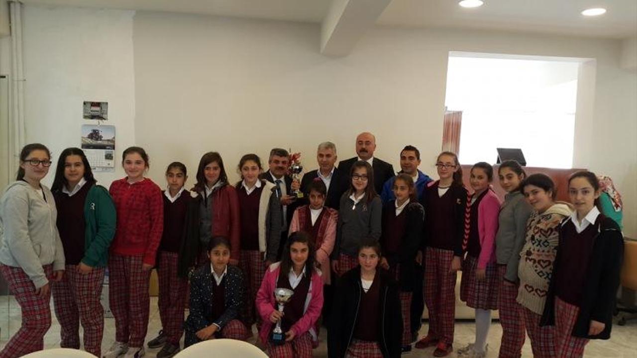 Giresun Küçük Kızlar Voleybol Şampiyonluğunu kazanan Şebinkarahisar İstiklal Ortaokulu öğrencileri, Şebinkarahisar Belediye Başkanı Şahin Yılancı'yı makamında ziyaret etti.