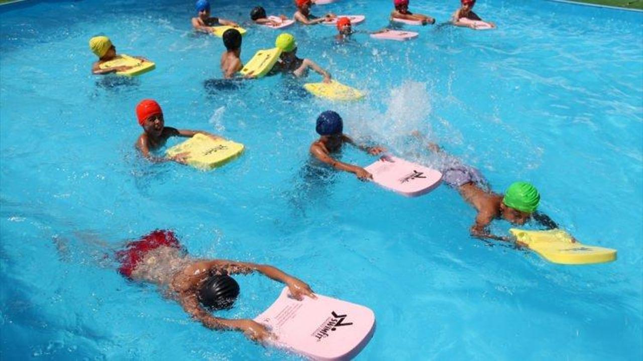 Antalya Büyükşehir Belediyesince Manavgat ilçesinde portatif havuzda 560 çocuğa yüzme eğitimi verilecek.