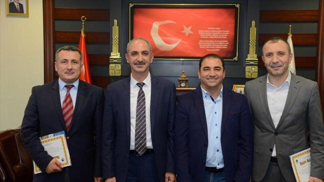 Rektör Karakaya, Kulüp Başkanı Doç. Dr. Mahmut Erbey, Şube Sorumlusu Yrd. Doç. Dr. Kazım Kaya ve Kulüp Menajeri Yrd. Doç. Dr. Yakup Akyel'e başarılarından dolayı takdir belgesi verdi.