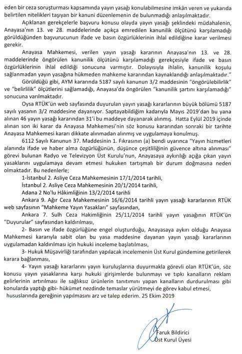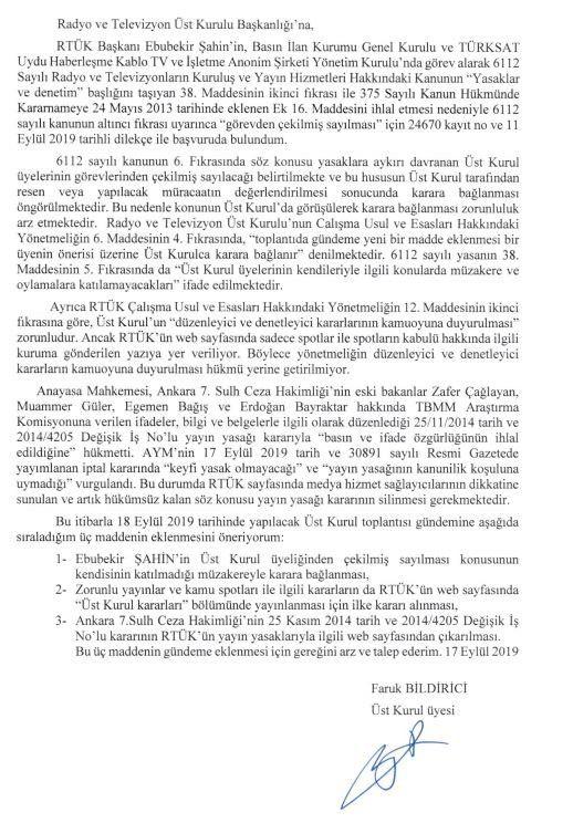 Faruk Bildirici, RTÜK'teyken verdiği bu dilekçeleri birçok kez ısrarla Üst Kurul toplantılarında da dile getirdi.