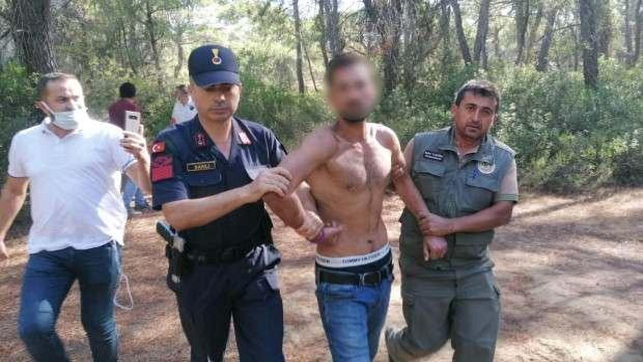 Orman içinde araştırma yapan orman görevlileri ve jandarma ekipleri, 4'üncü noktada yangın çıkarmaya çalışan kişiyi suçüstü yakaladı. Gözaltına alınan ve adının S.K. olduğu öğrenilen şüpheli, jandarma aracına götürülürken, çevredekiler de tepki gösterdi. S.K., "Neden yakıyorsun buraları?" sorusuna, "Evimi yakıyorum" diye cevap verdi. Kalabalığın linç girişiminde bulunduğu S.K., jandarma aracına bindirilerek karakola götürüldü.