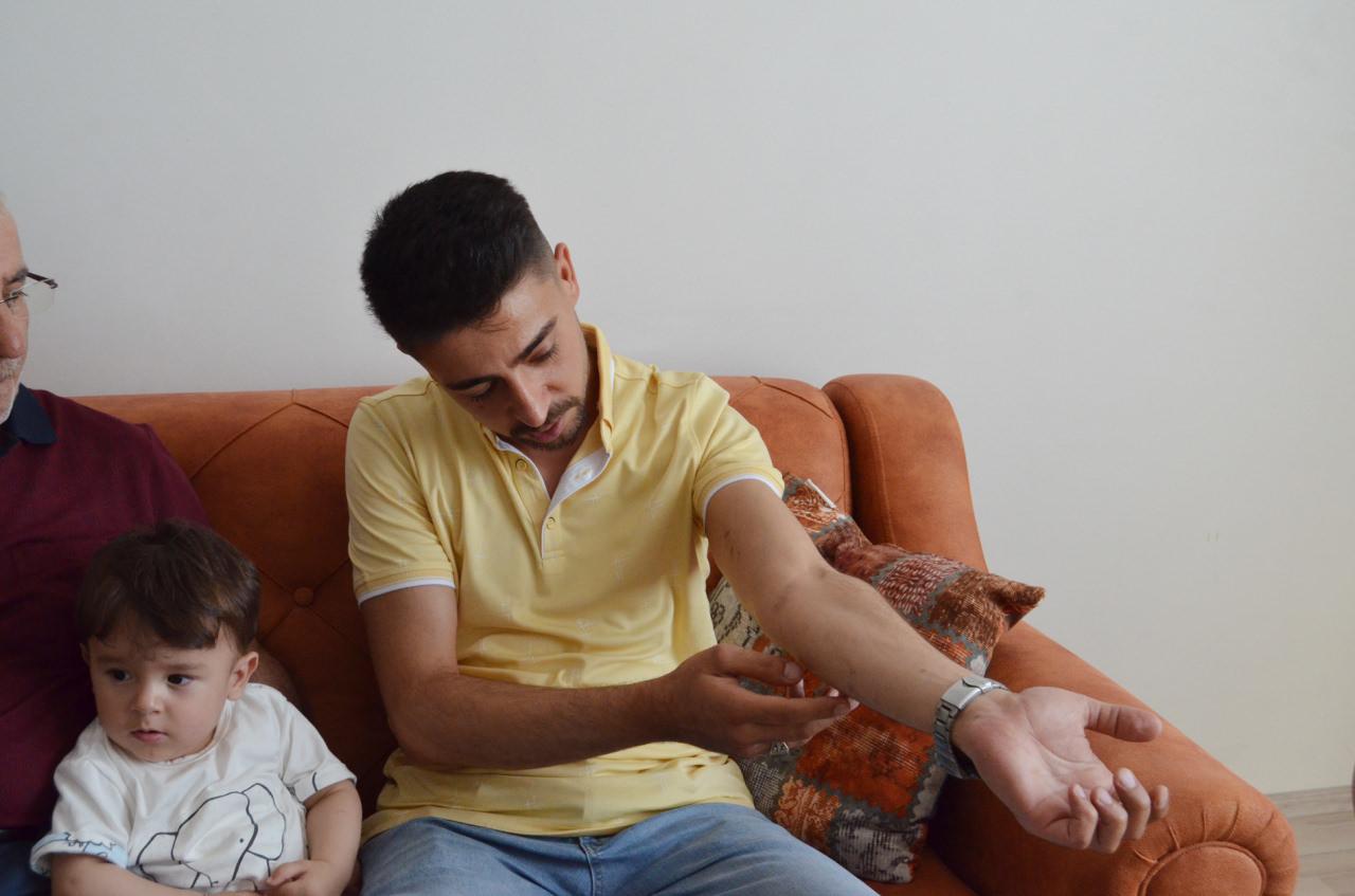 "18 Nisan tarihinde Pençe- Kilit Harekatına gittik ve 15 gün sonra teröristlerin güdümlü tel füze atışı sonrası benimle beraber 4 askerimiz yaralandı. Belimde, kalçamda, sırtımda, kafamda ve kolumda şarapnel parçaları var. Bize 1,5 kilometre ileriden füze atışı yapıldı. Bizim gördüğümüzde 5-6 metre kalmıştı. Hemen kendimi sol tarafa atıp yüzüstü kapandım. Kafamızda başlığımız ve hücum yeleğim olmasına rağmen yaralandım. Kendime geldiğimde pantolonum kesilmiş, paçalarımdan kan akıyordu. Biraz yürümeye çalıştım. Baldırlarımın ağrıdığını hissettim. Hemen arkadaşlarım yardıma koştu. İlk müdahale yaralandığım yerde yapıldı. Helikopterle Işıklı Sahra Hastanesi'ne sevk ettiler. 3-4 saat ameliyatım sürmüş. Doktorun söylediğine göre 25-30 şarapnel parçası vücudumdan çıkarılmış. Hala kalan parçalar var. Onlar da ilerleyen süreçte çıkarılacakmış. Hastanedeki tedavimin ardından ambulans uçakla Ankara GATA’ya sevk edildim. 20 gün orada tedavim sürdü. Yürümemde sıkıntı vardı. Fizik tedavi sonrası yürümeye başladım.''