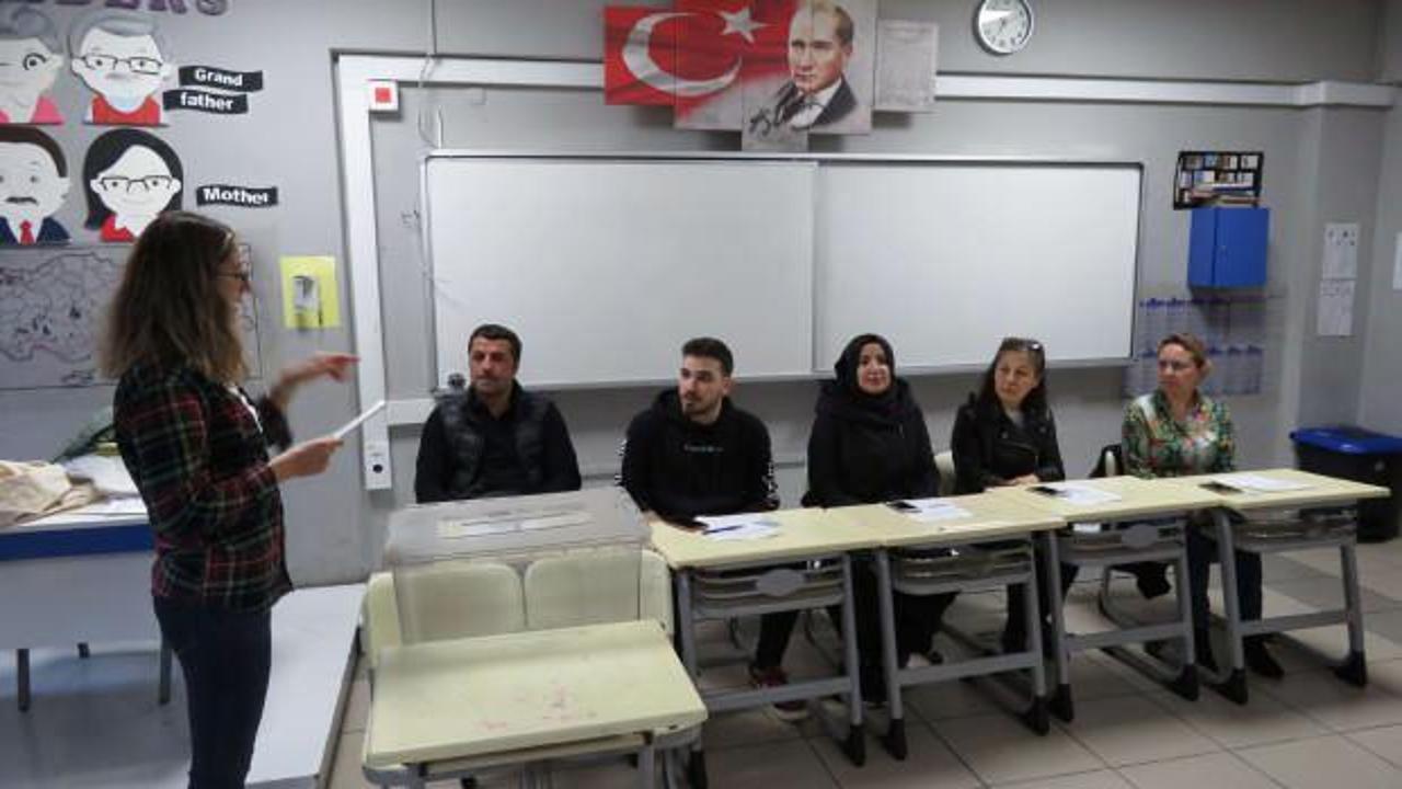 Oy verme işlemi başlatmadan önce hazırlıklarını yapan görevliler, sandık başkanları tarafından söylenen kelimeleri tekrar ederek yeminlerini etti.