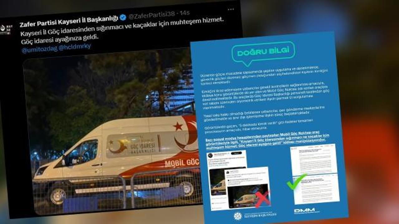 Cumhurbaşkanlığı İletişim Başkanlığı Dezenformasyonla Mücadele Merkezi (DMM), bazı sosyal medya hesaplarından paylaşılan Mobil Göç Noktası araç görüntüleriyle ilgili, "Kayseri İl Göç idaresinden sığınmacı ve kaçaklar için muhteşem hizmet: Göç idaresi ayağına geldi" iddiası manipülasyon olduğunu ortaya çıkardı.