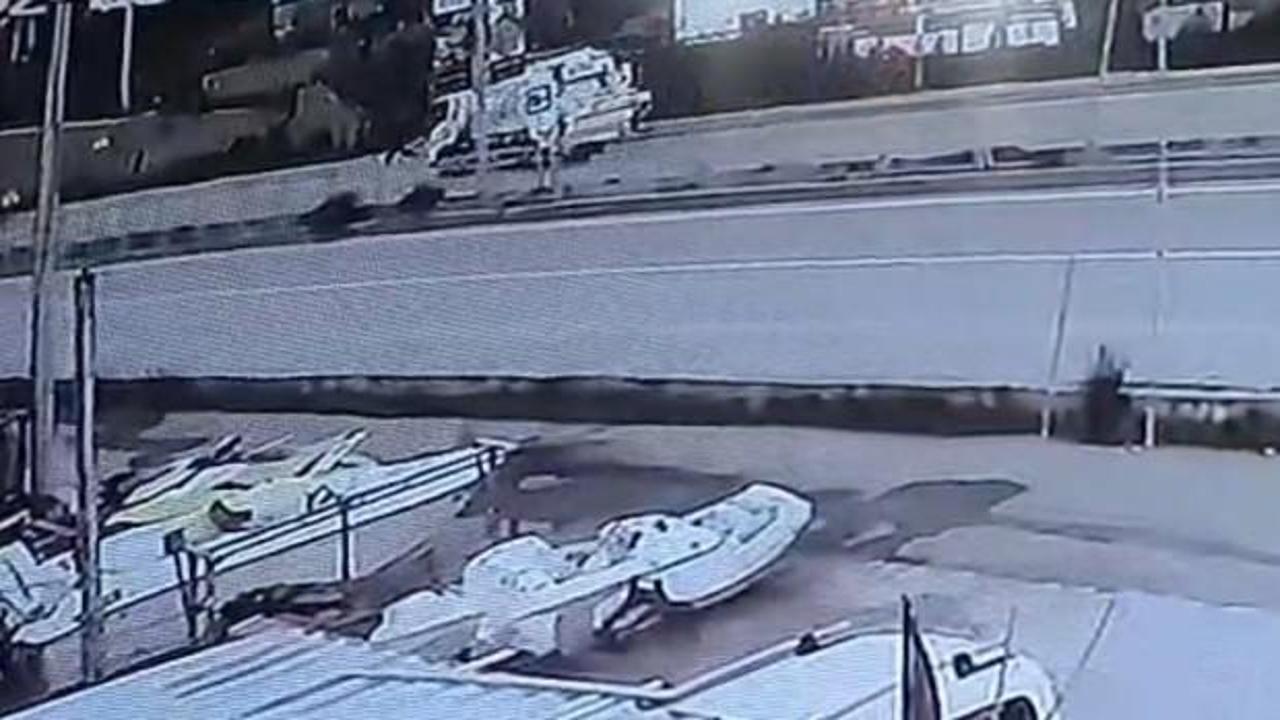 Muğla'nın Bodrum ilçesinde, havlayan köpekten korkup kaçarken çöp kamyonunun çarptığı Şahin Atiz (24), ağır yaralandı. Kaza, güvenlik kamerasına yansıdı.
