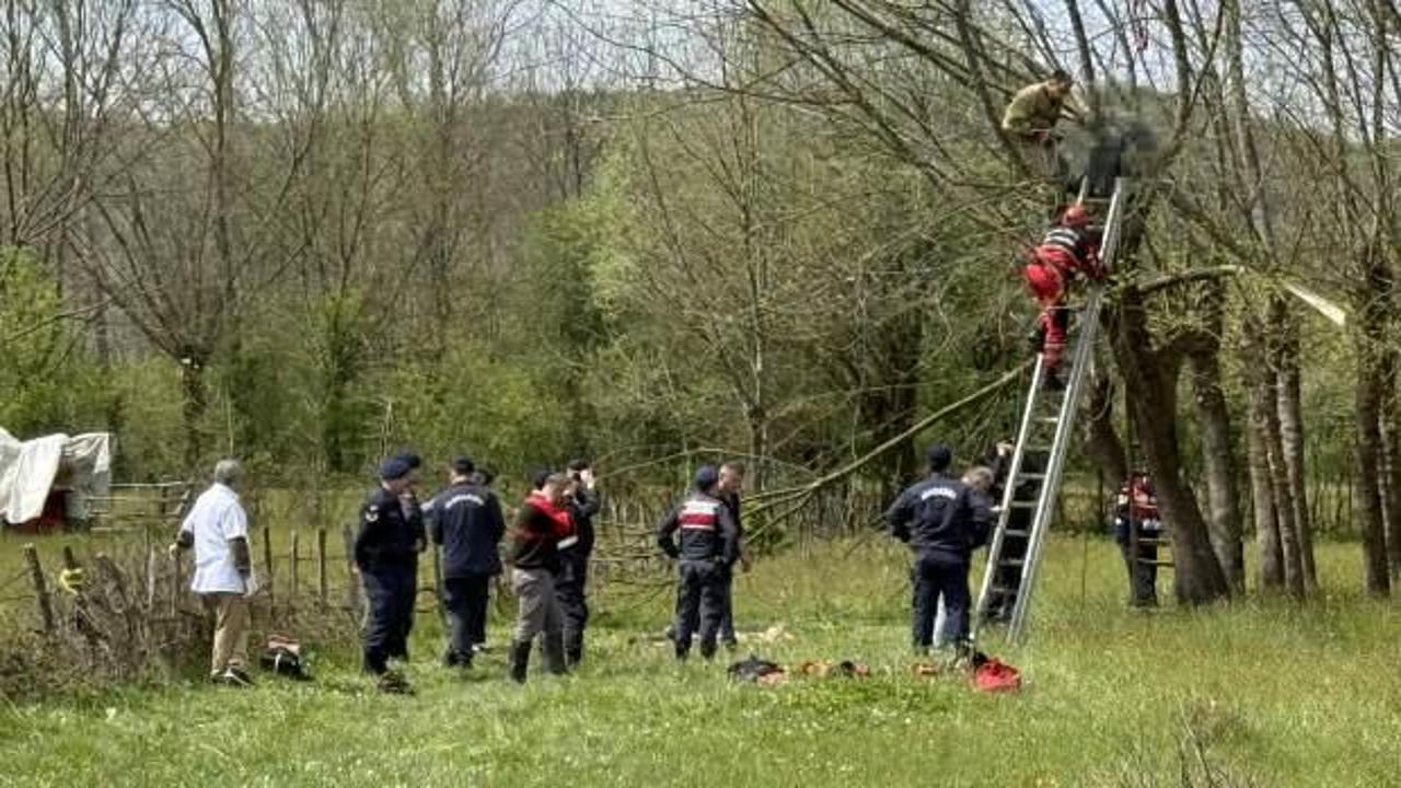 Bunun üzerine bölgeye sağlık, jandarma ve itfaiye ekipleri sevk edildi. Sağlık ekipleri, yaklaşık 5 metre yükseklikte dalların arasında kalan Hasan Erdoğan'ın kalp krizi geçirip yaşamını yitirdiğini tespit etti.