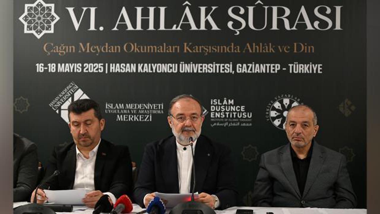 İslam Düşünce Enstitüsü Başkanı Prof. Dr. Mehmet Görmez, Gaziantep'teki bir otelde düzenlenen basın toplantısında 6. Ahlak Şurası'nın 13 maddelik sonuç bildirgesini açıkladı.