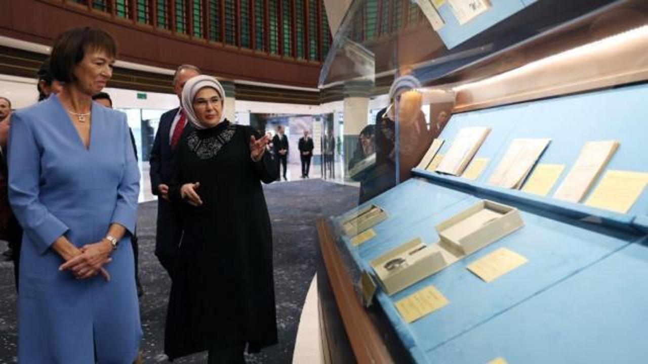 Emine Erdoğan, Almanya Başbakanı Merz'in eşiyle Millet Kütüphanesi'ni ziyaret etti