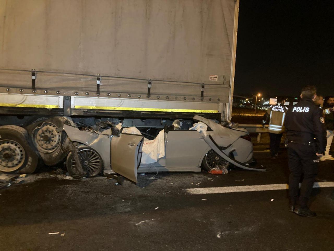 Çarpışmanın şiddetiyle otomobil, TIR'ın dorsesinin altına sıkıştı. Çevredekilerin ihbarı üzerine olay yerine sağlık, itfaiye, polis ve karayolları ekipleri sevk edildi. Sağlık ekiplerinin yaptığı kontrollerde demir yığınına dönüşen otomobildeki sürücü B.K ve yanındaki E.D.'nin hayatını kaybettiği belirlenirken, kazada ağır yaralanan M.C. ise ambulansla Sincan Devlet Hastanesi'ne kaldırıldı.