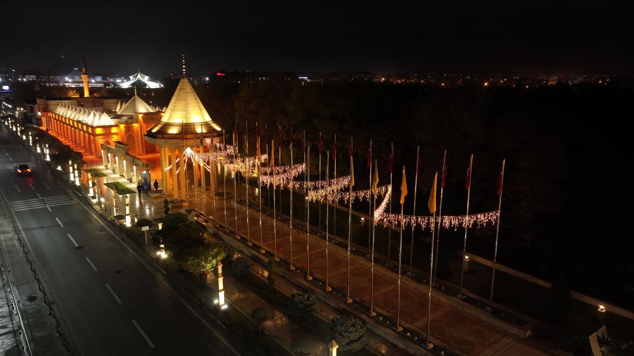 Konya Büyükşehir Belediyesi, Hz. Mevlana’nın 752. Vuslat Yıl Dönümü Uluslararası Anma Törenlerinde şehre gelen misafirleri en güzel şekilde ağırlamak için şehir merkezini özel aydınlatmalarla süsledi.