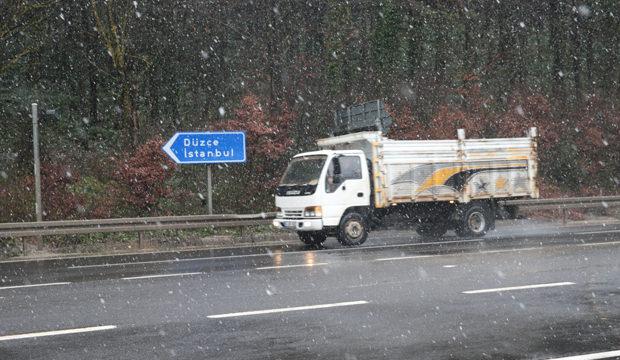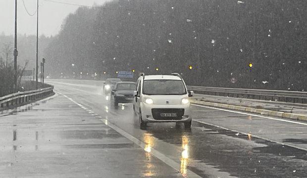 Kara yolunun Abant Kavşağı, Bakacak, Karanlıkdere ve Seymenler mevkilerinde gece etkili olan yağmur, sabah saatlerinden itibaren aralıklı kar yağışı olarak devam ediyor.