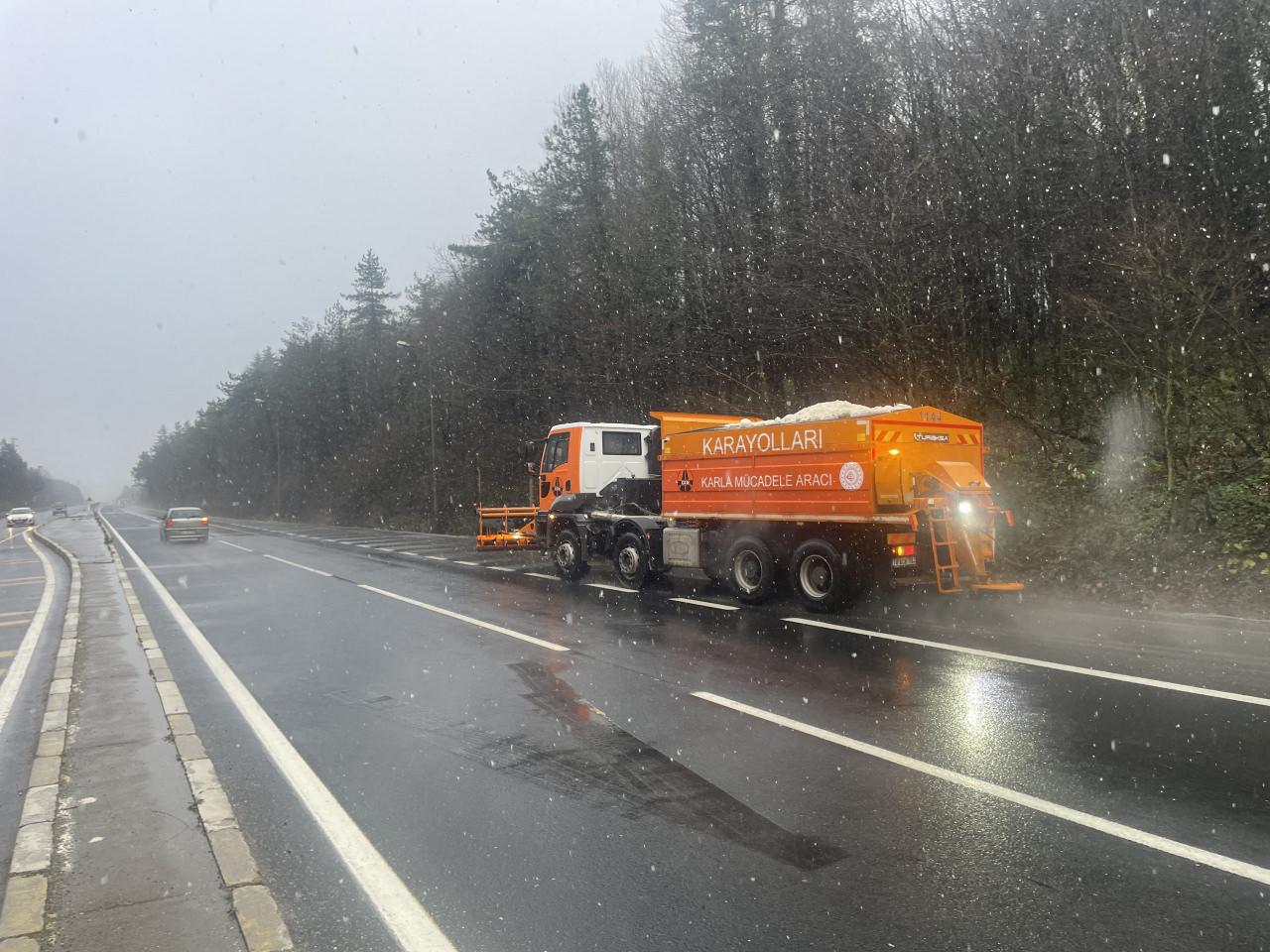 Karayolları ve trafik ekipleri, sürücüleri güzergahta etkili olan kar yağışına karşı dikkatli seyretmeleri konusunda uyardı.