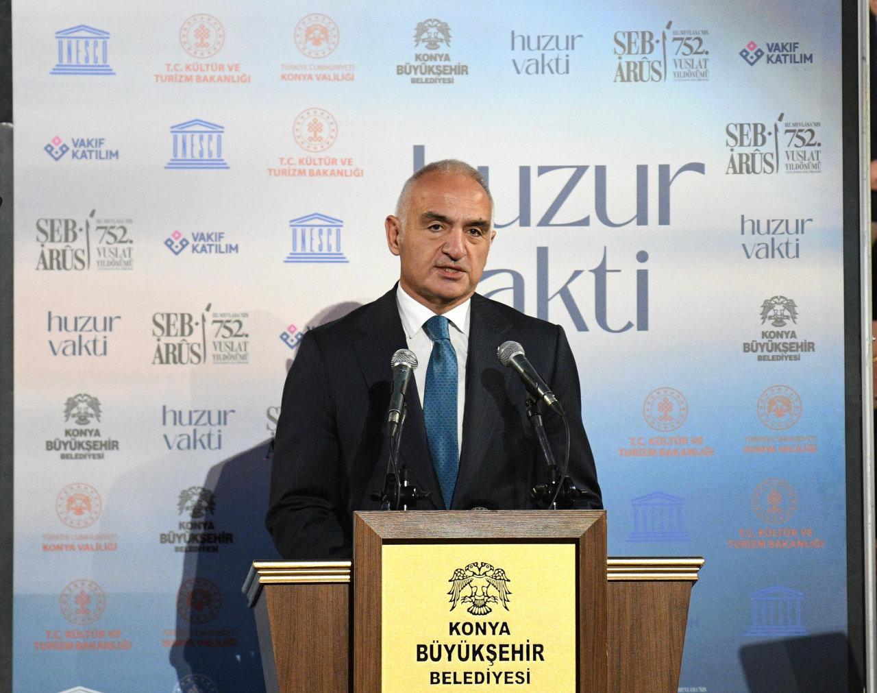 Kültür ve Turizm Bakan Mehmet Nuri Ersoy da, Hazreti Mevlana'nın "Aşk nedir?" Sorusuna "Ben ol da bil." şeklinde cevap verdiğini hatırlatarak, insanların Mevlana’nın eserlerinden alacağı lezzet ve ibretin de farklı olacağını söylemenin yanlış olmayacağını belirtti.