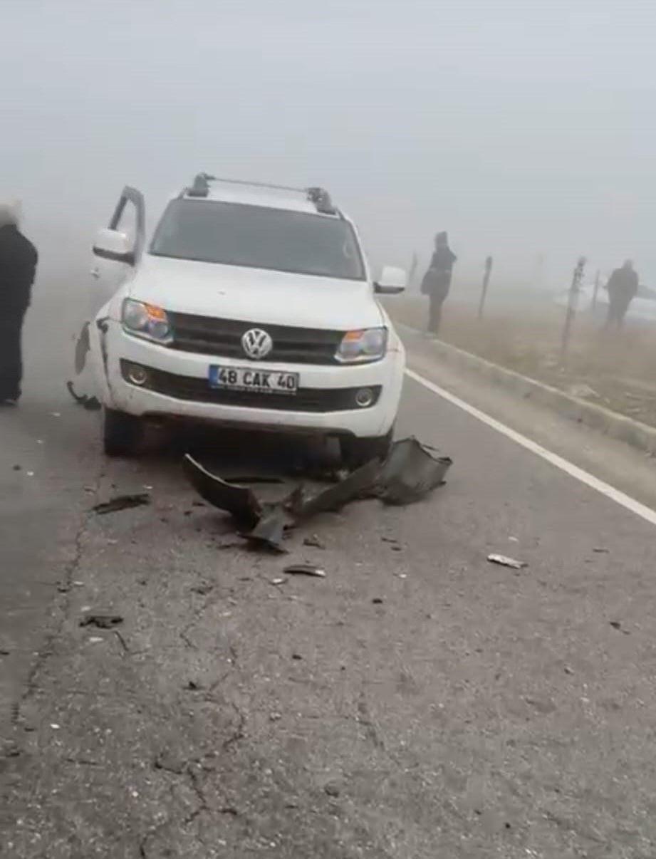 İ.Ç'nin (24) kullandığı 34 BFF 652 plakalı otomobil, aynı yönde seyreden N.K. (53) yönetimindeki 48 CAK 40 plakalı otomobil ve A.Ç'nin (47) idaresindeki 72 AAS 255 plakalı minibüs, Dövecik köyü mevkisinde çarpıştı.