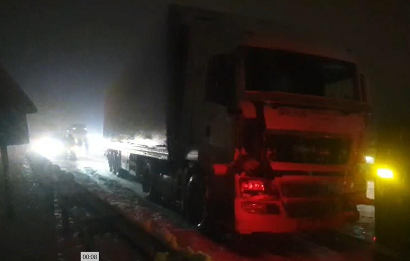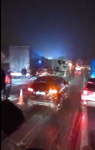 Anadolu Otoyolu'nun Bolu Dağı Tüneli çıkışında kar nedeniyle kayganlaşan yolda 6 araç çarpıştı. Zincirleme kaza, bir sürücünün cep telefonu kamerasıyla kaydedildi.
