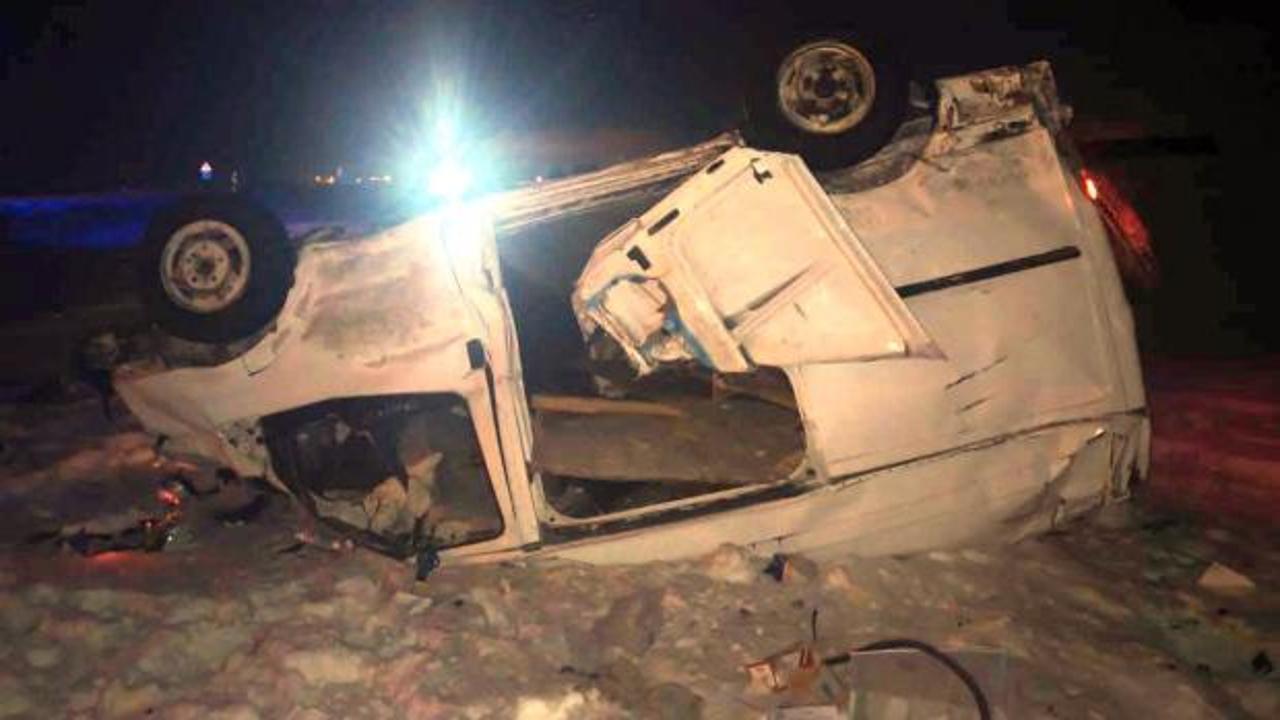 Kars'ta şarampole devrilen panelvanın sürücüsü hayatını kaybetti