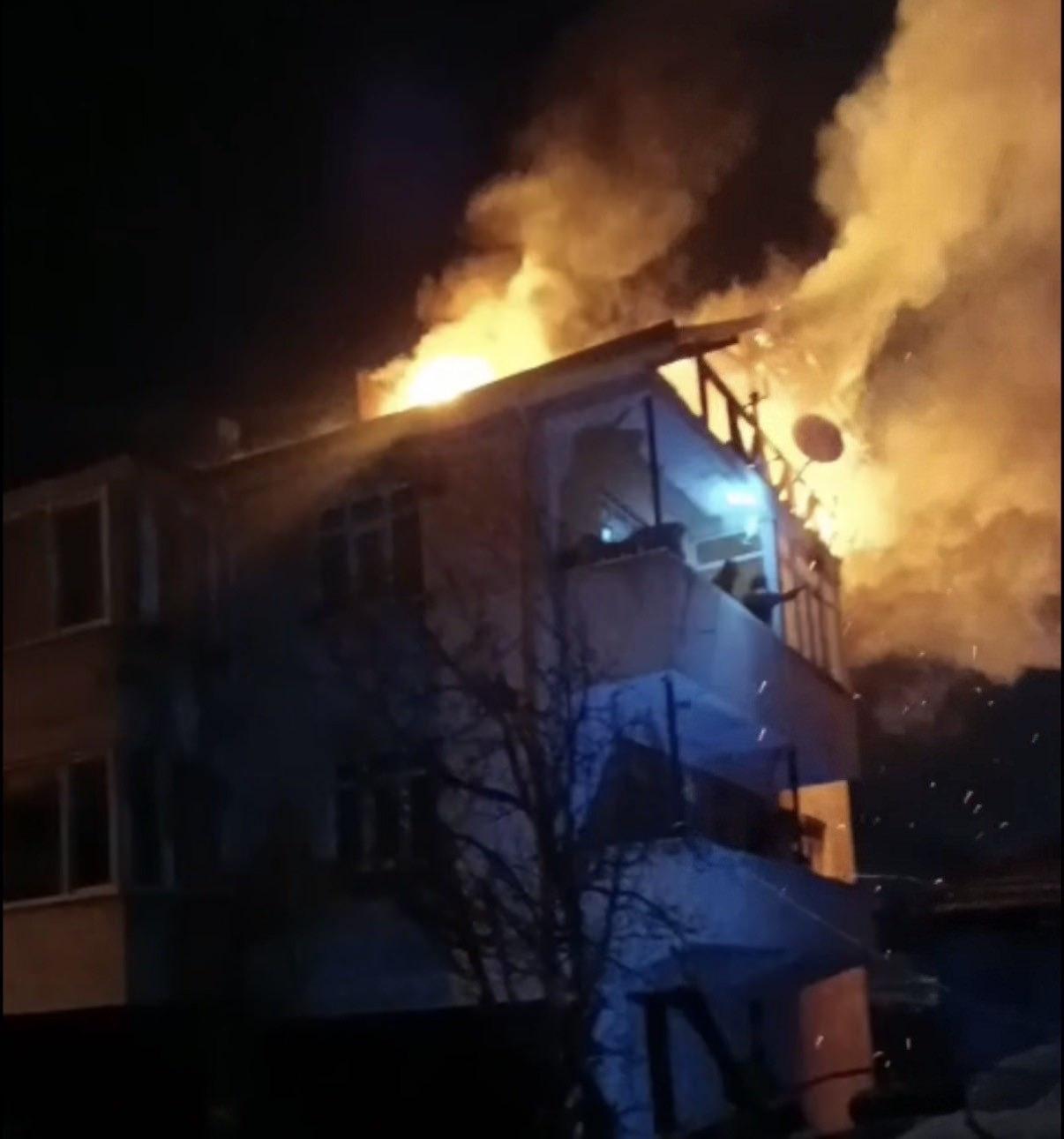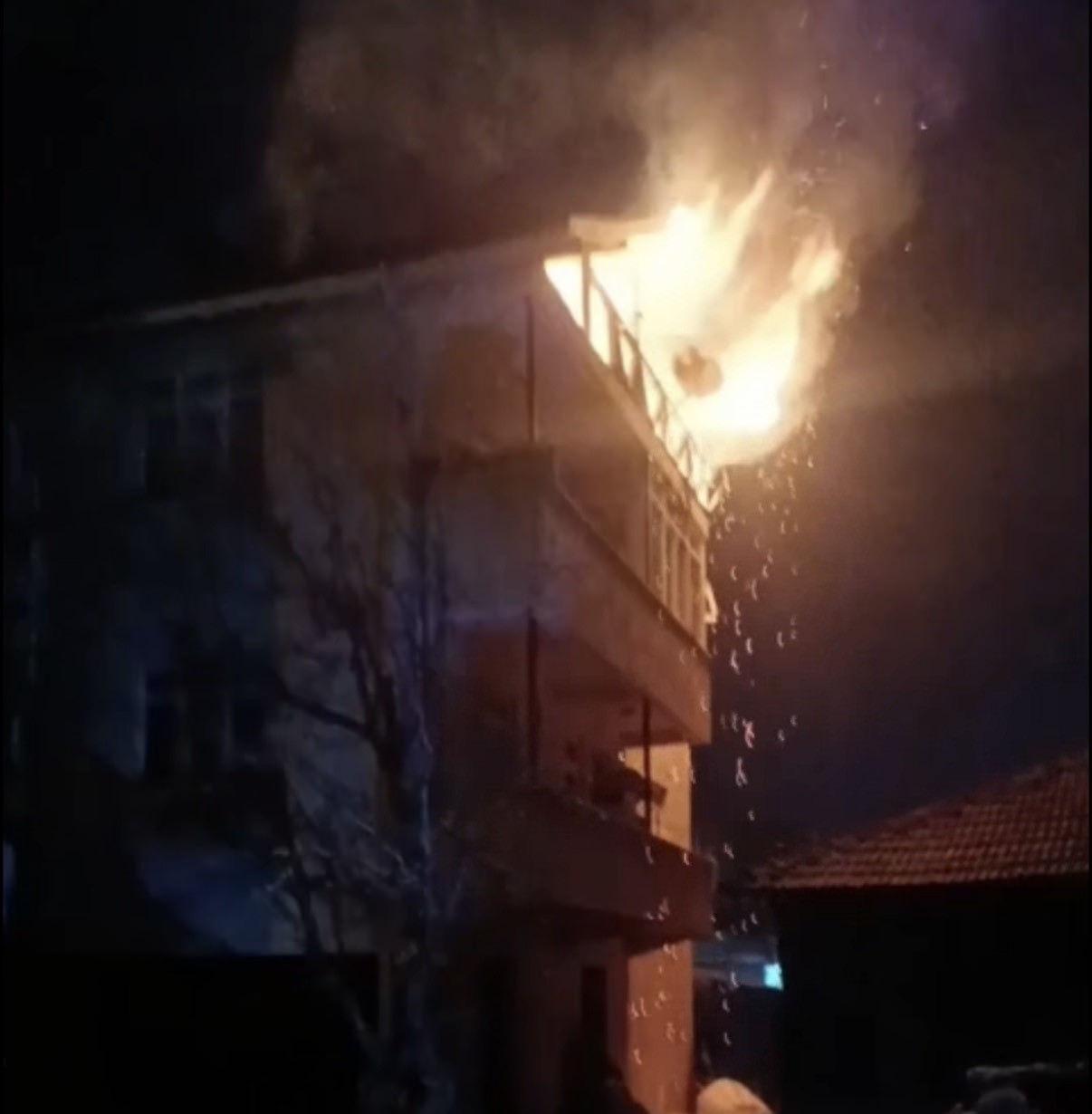 Düzce’nin Kuyudüzü köyünde 3 katlı binanın çatısında yangın çıktı. Alev topuna dönen evdeki yangın güçlükle söndürüldü.