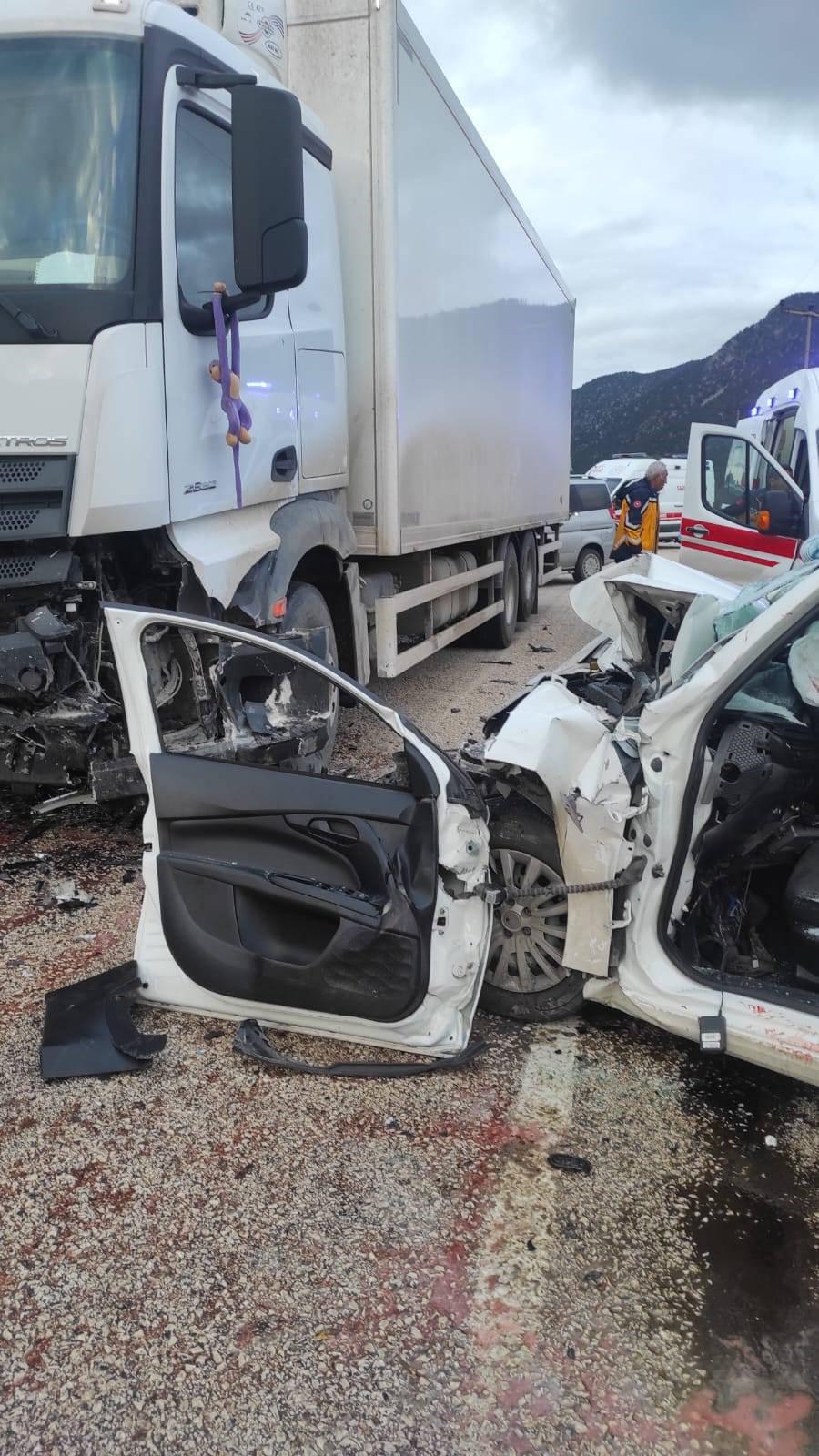 Otomobil, park halindeki TIR'a çarptı: 2 ölü, 1 yaralı