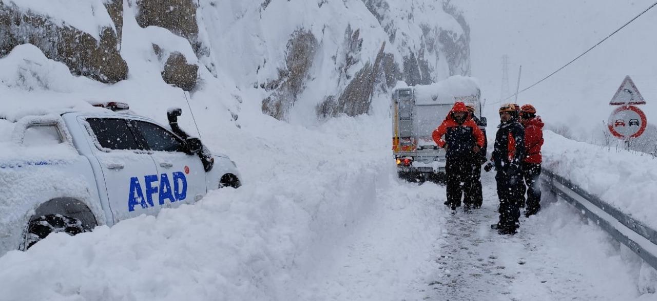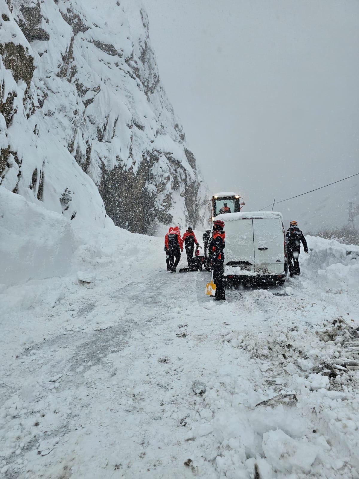 İhbar üzerine olay yerine AFAD ve bölgede karla mücadele çalışması yürüten Karayolları 114. Şube Şefliği ekipleri sevk edildi.
