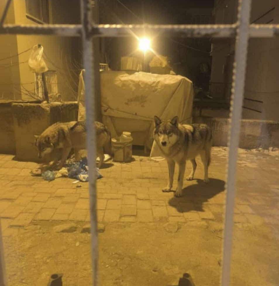 Beypazarı ilçesi Zafer Mahallesi'nde gece saatlerinde sokaklarda dolaşan 2 kurt görüldü. Aç kalan kurtlar, çöpleri karıştırarak yiyecek aradı.