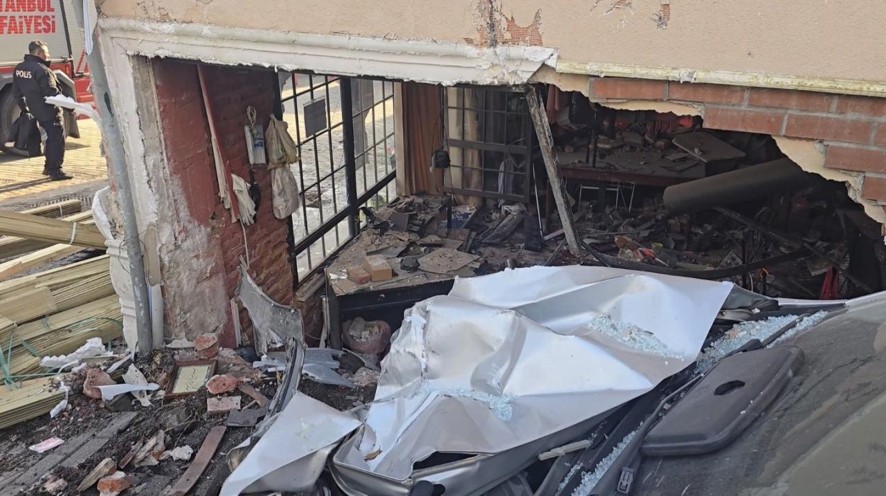 Beykoz'da yokuştan inen tahta yüklü kamyon, şoförünün direksiyon hakimiyetini kaybetmesi sonucu önce yoldan geçen 2 turiste çarptı, ardından 2 katlı binanın giriş katında bulunan boş dükkana girdi.
