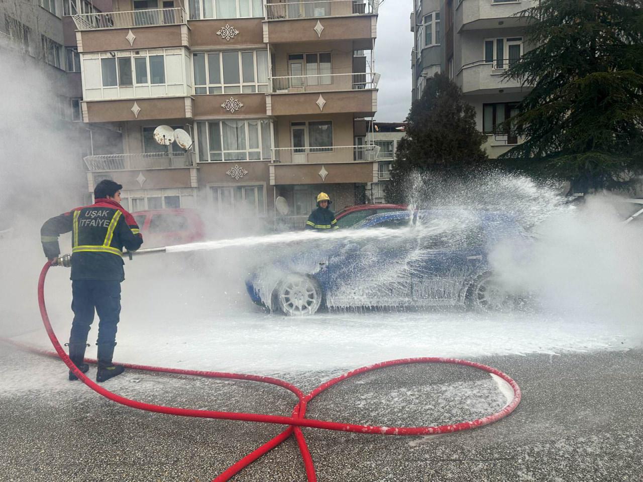 Uşak'ta seyir halindeki otomobilde henüz belirlenemeyen bir nedenle yangın çıktı. İtfaiye ekiplerinin müdahalesiyle yangın söndürüldü.