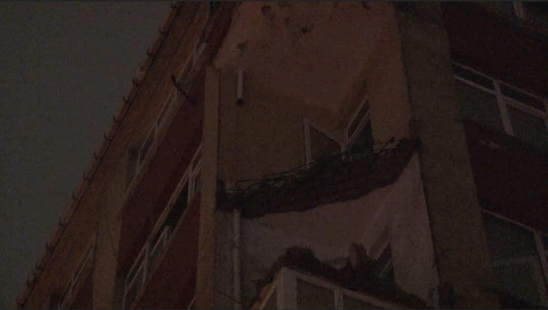 Balkonlardan kopan beton parçaların bir kısmı sokağa, bir kısmı ise park halindeki araçların üzerine düştü.