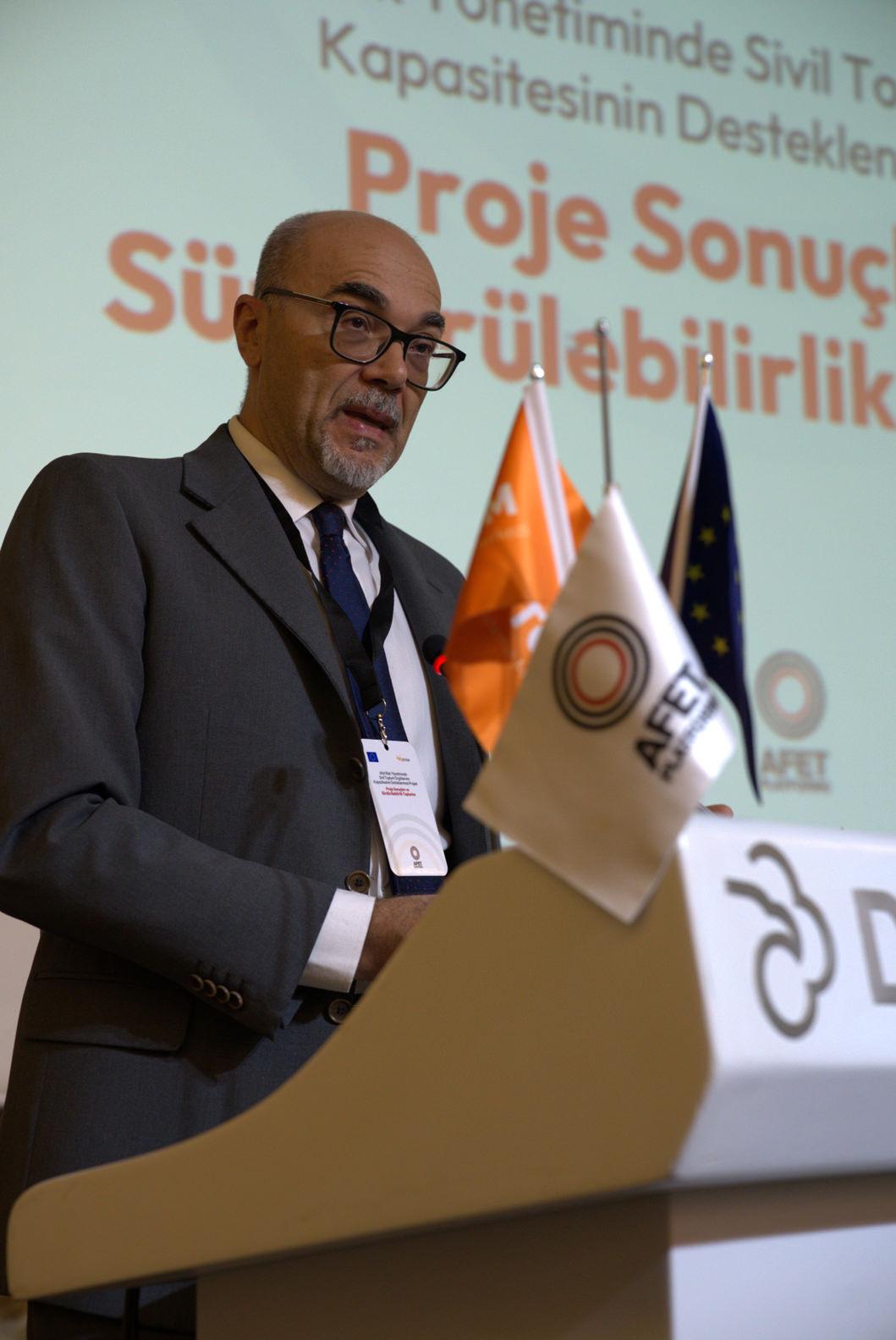 Avrupa Birliği Delegasyonu Enerji ve İklim Değişikliği Program Sorumlusu, Ateşe Christian Ballaro, Afet Platformu’nun kendini adamışlığı ve diğerlerine yardım etme tutkusunun takdire şayan olduğunu belirterek, “Sivil toplumun bu tür zor anlarda bir araya gelmesi önemli. Ülkenin en büyük değeri sizlersiniz, buna canı gönülden inanıyorum. Sivil toplum örgütleri, afetin en ön cephesinde yer alanlardır. Afet platformu bu konuda çok önemli bir köprü görevi görüyor. Sivil toplum örgütleri ile kamu kurumları arasındaki bu iş birliğini gerçekleştirmek, aynı zamanda yerel örgütlerle de iş birliği halinde olmak, daha demokratik ve güvenli bir geleceği taahhüt edebilir. Uluslararası il ortakları da bu taahhüdü ortaya koymalı” diye konuştu.