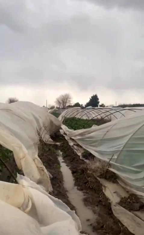 Kuvvetli rüzgar nedeniyle sera muşambaları yırtılırken, demir aksamların büküldüğü, birçok seranın kullanılamaz hale geldiği görüldü. Çiftçiler, bir felaketin etkilerini henüz atlatamadan yeni bir felaketle karşı karşıya kaldıklarını söyledi.
