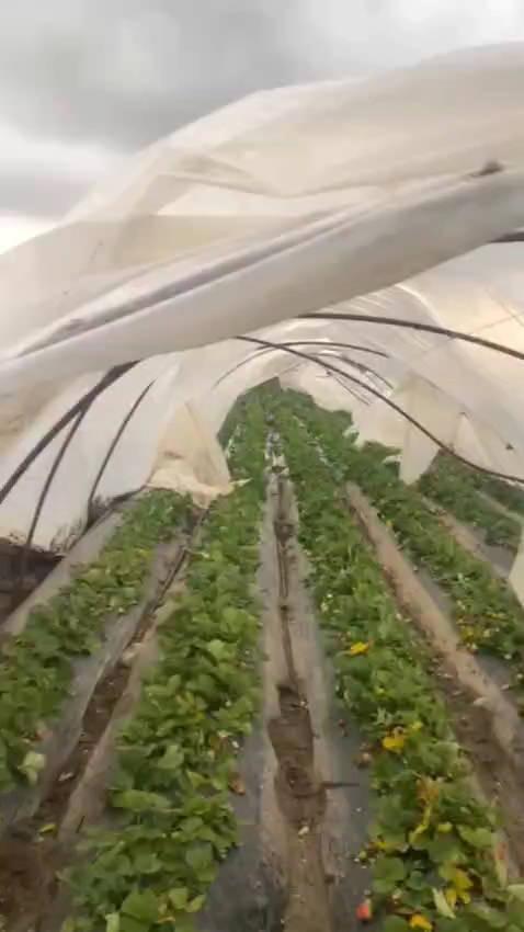 Antalya'nın Serik ilçesine bağlı Kadriye Mahallesi'nde önceki günlerde yaşanan şiddetli yağışın yaraları sarılmaya çalışılırken, bölgeyi bu kez fırtına vurdu. Daha önce su baskınları nedeniyle büyük zarar gören çilek seraları, devam eden fırtına ve sağanakla yerle bir oldu.