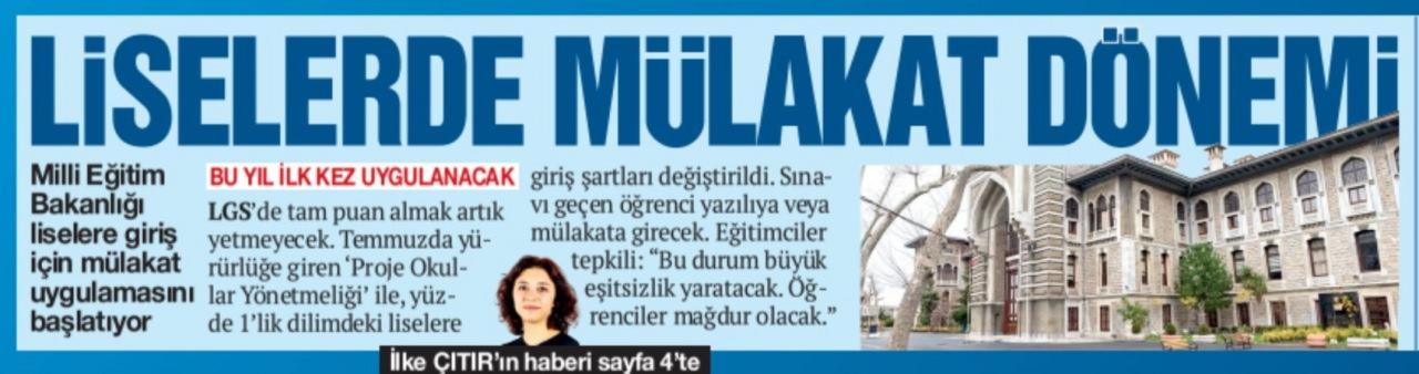 Muhalif medya, "Liselerde Mülakat Dönemi" başlıklı yayınladığı yalan habere tepkiler büyüyor. Gazete haberi yayınladıktan sonra silerken sosyal medyada yayılmasının haberlere tepki gösterildi.