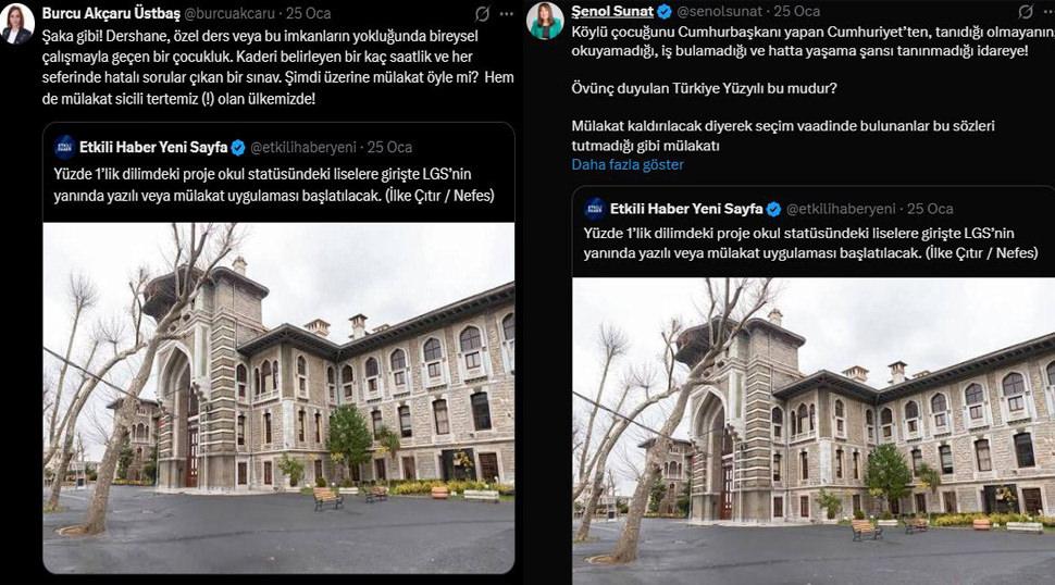 Nefes gazetesi, LGS puanıyla öğrenci alan İstanbul Erkek, Kabataş Erkek ve Cağaloğlu Anadolu gibi proje okullarına girişte mülakat veya yazılı sınav şartı getirileceğini iddia etmiş, haber sosyal medyada büyük yankı uyandırmıştı.