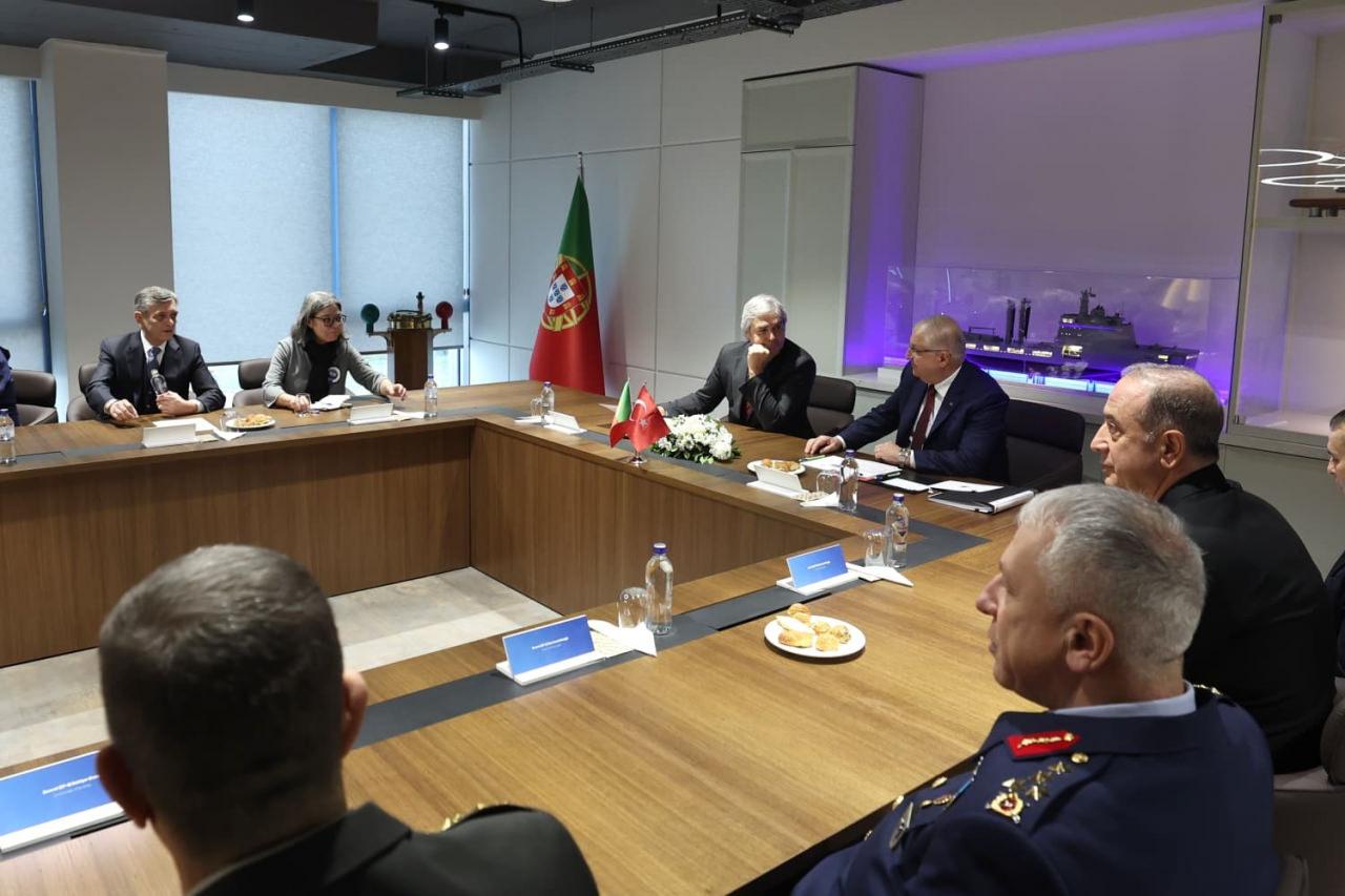 Milli Savunma Bakanı Yaşar Güler ve Portekiz Savunma Bakanı Nuno Melo, Portekiz donanması için denizde ikmal ve lojistik destek gemisinin ilk gemi kızağa koyma töreninin ardından toplantı yaptı.