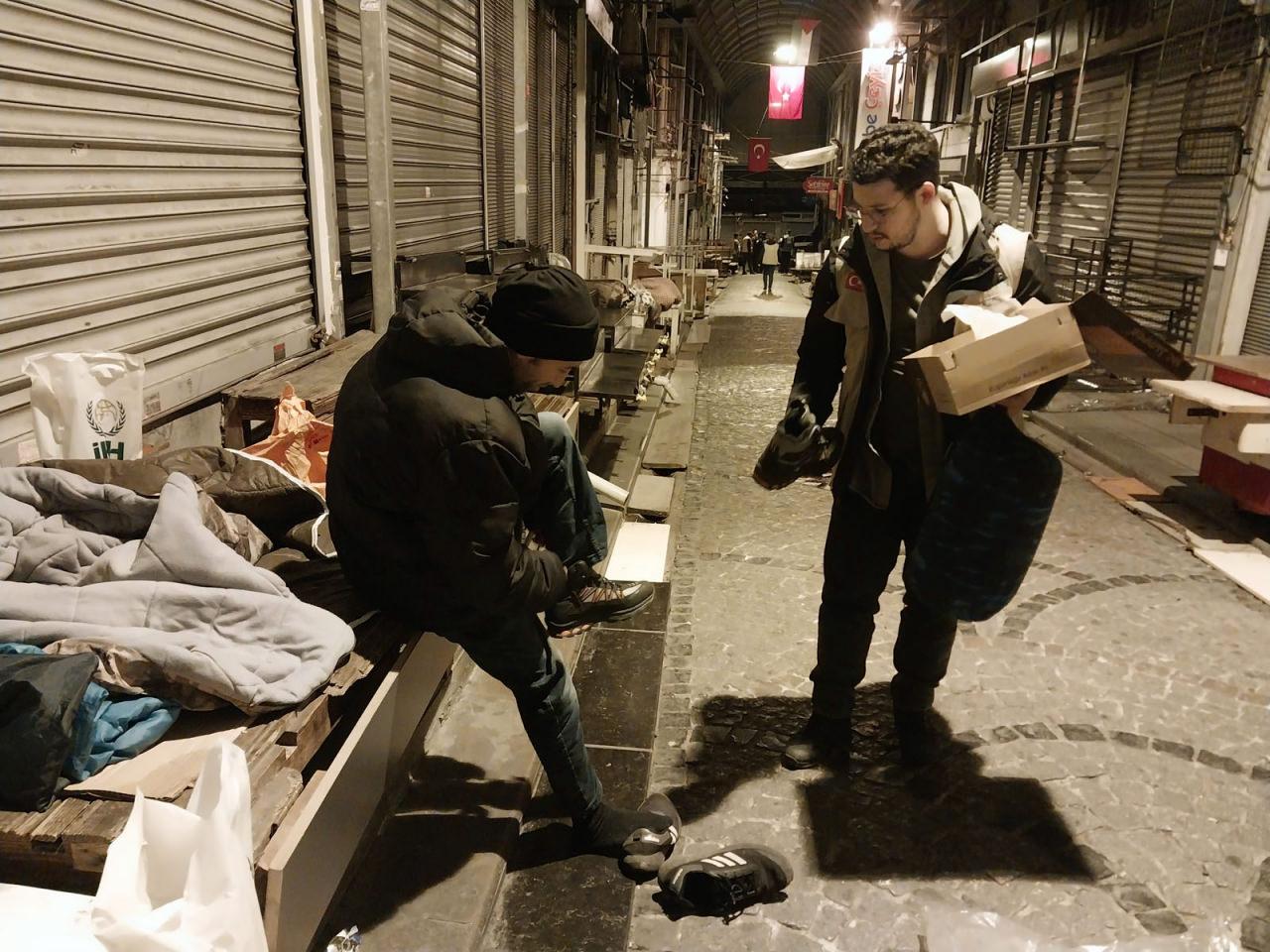 İHH, sokakta kalan vatandaşlara bot ve mont verdi!